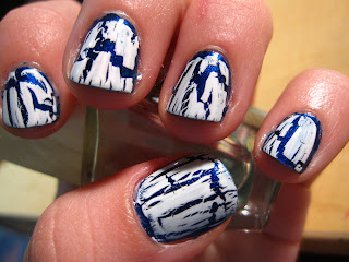 Also tried something new and after applying the shatter, I freehanded swiped Blue Over a Boy on the tips. Whatcha think? I think it makes the shatter look really squared off. 🙂
